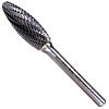 Твердосплавная борфреза 12х32х77 мм РИ ri.380.2 с X-образной насечкой, пламевидная H (FLH) предназначена для высокоскоростной обработки металлических изделий, включая стали и различные сплавы, и имеет универсальную область применения в машиностроении, судостроении и других отраслях. Оснастка выполнена из твердого вольфрамокобальтового сплава ВК8, который обеспечивает высокую износостойкость и позволяет эффективно работать с широким спектром металлов на высоких скоростях. Используется в основном на ручных пневматических и электрических шлифовальных машинах. Цилиндрический хвостовик подходит для ручных шлифмашин всех видов и станков с кулачковым патроном.