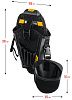 - Основной отсек с регулируемым ремнём и верхней застёжкой на липучке надёжно фиксирует шуруповёрт, предотвращая его выпадение при наклонах.