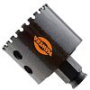 Режущая кромка оснащена сегментами с алмазным напылением высокой концентрации, нанесенным по технологии вакуумной пайки или спекания, что обеспечивает исключительную износостойкость и агрессивность реза. Уникальная геометрия корпуса с прорезями способствует эффективному охлаждению зоны реза воздушным потоком и быстрому отводу шлама. Это позволяет работать на высоких оборотах без обязательного водяного охлаждения (хотя мокрое сверление значительно продлевает ресурс).